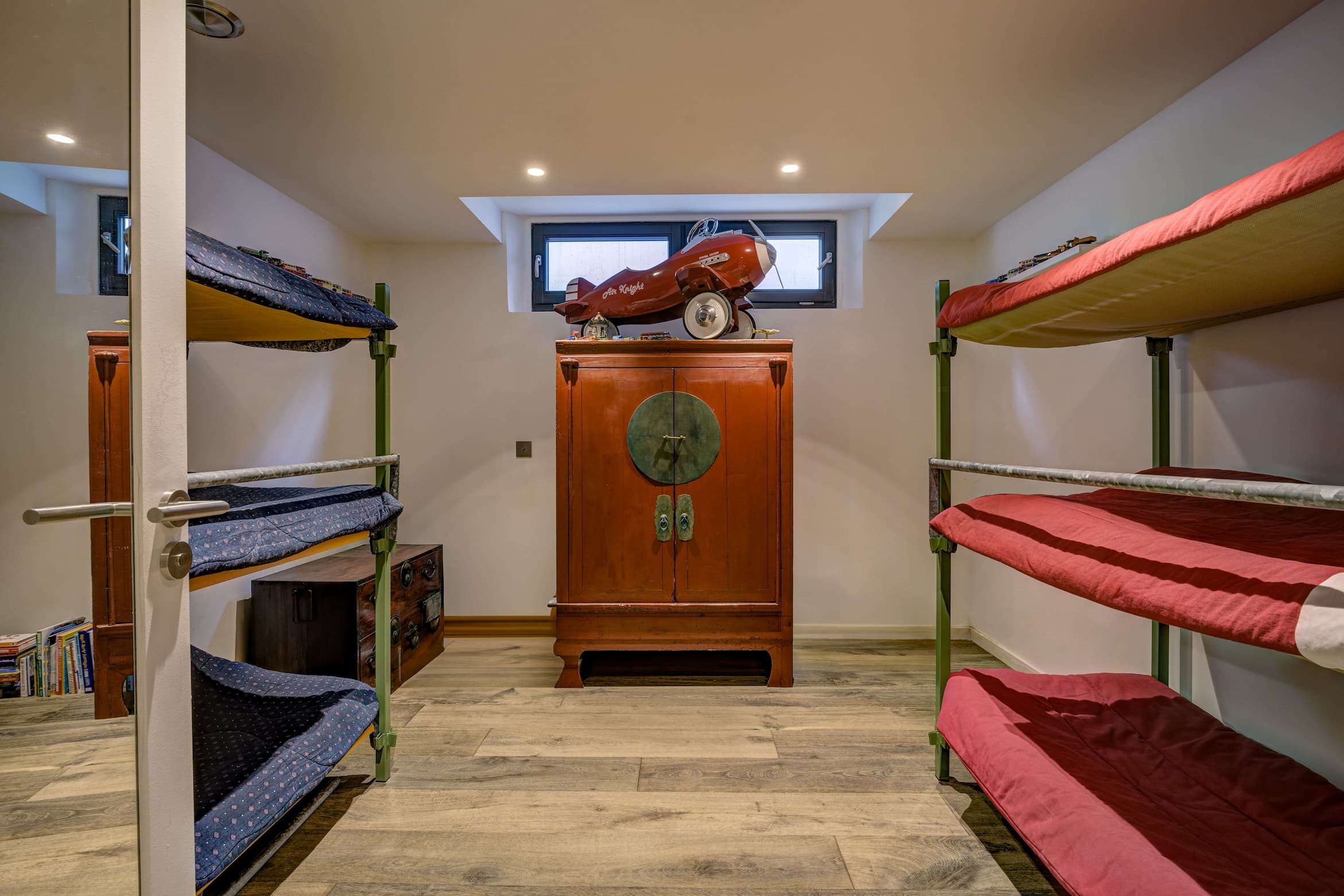 Chalet Alba sleeps up to 15 guests across six stylish bedrooms. On the ground floor, a spacious master suite is complemented by two double bedrooms with en-suite bathrooms and a single bedroom or study with access to a separate shower room. The lower ground floor includes a unique double bedroom and a dedicated bunk room for six, ideal for children or younger guests.