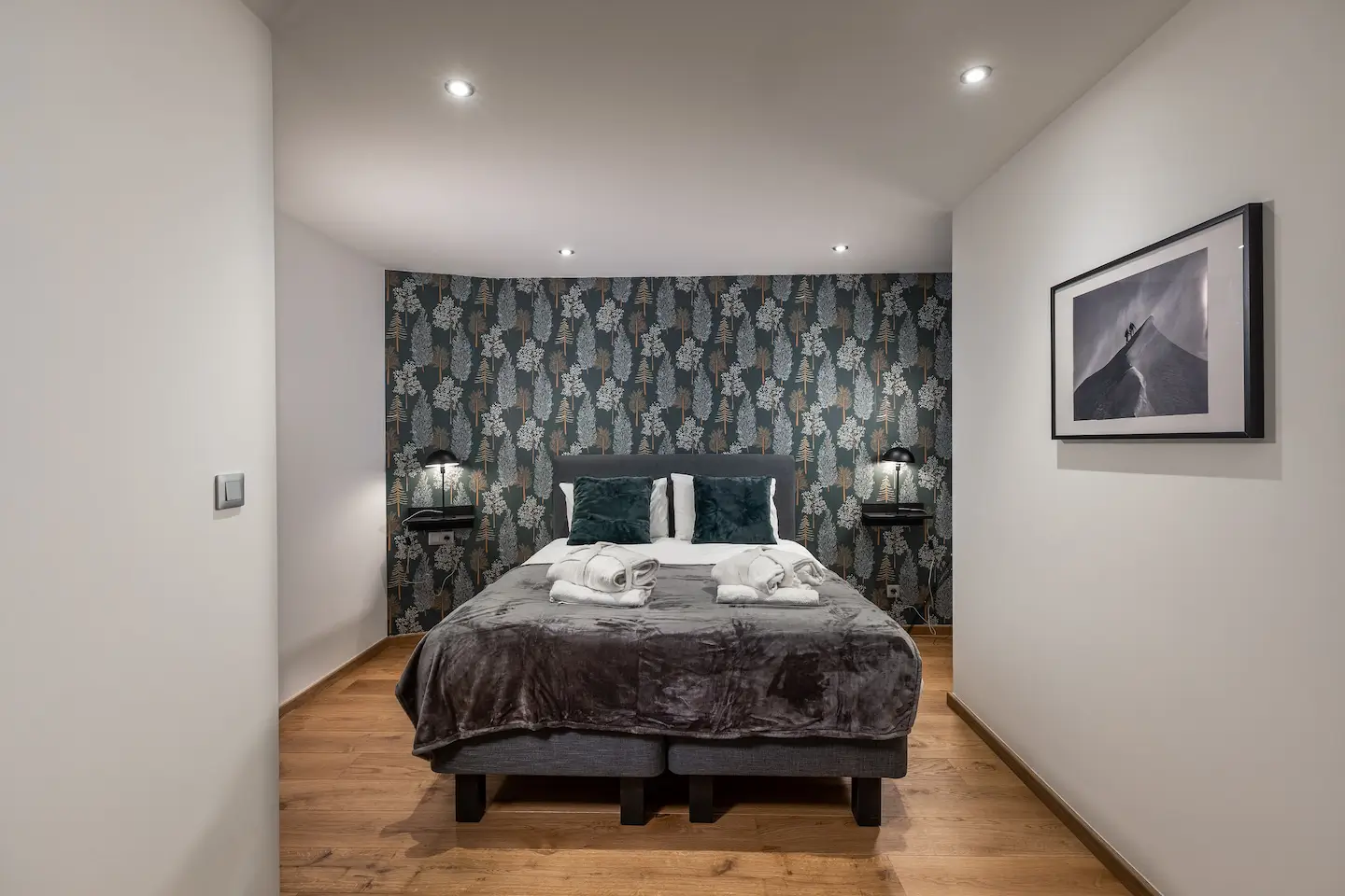 Chalet Alpaga Two is an elegant, stylish retreat nestled in the heart of Morzine, offering the perfect combination of central convenience and Alpine tranquillity. Sleeping up to 11 guests across four thoughtfully designed ensuite bedrooms, including a family room with bunk beds and a mezzanine snug, it is ideal for families or groups seeking both comfort and sophistication. From the moment you enter, the chalet impresses with its harmonious blend of dark reclaimed wood, sleek matt black accents, bold wallpapers, and statement lighting, creating a contemporary yet warm Alpine atmosphere.