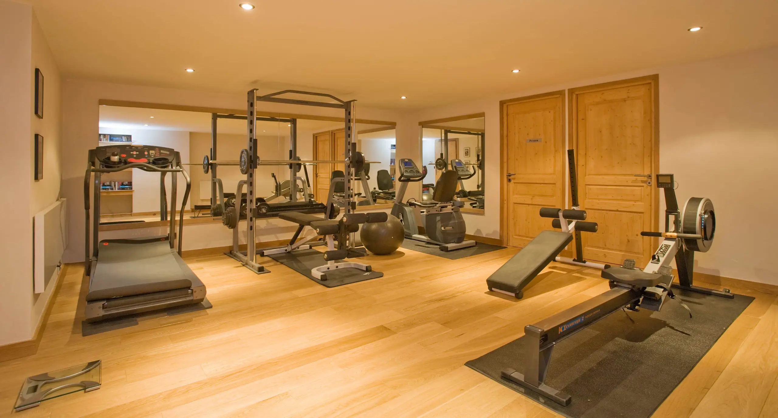 Chalet Cree also excels when it comes to entertainment and wellness. The lower level houses a dedicated TV and games room with a PlayStation, a bar, a billiard table, and a Sonos sound system that runs throughout the living areas. A fully equipped gym, private massage room, and a relaxing sauna with shower complete the chalet’s leisure facilities, offering something for everyone after a day on the mountain.