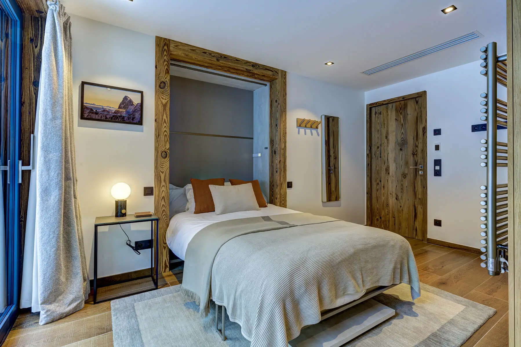 Accommodating 8–9 guests, the chalet offers five well-appointed bedrooms, including two doubles, a flexible double/twin, a bunk room with two singles, and a single room. Practical amenities include a garage with an EV charging point, external parking, ski and bike storage, and heated boot dryers, ensuring convenience for every guest.