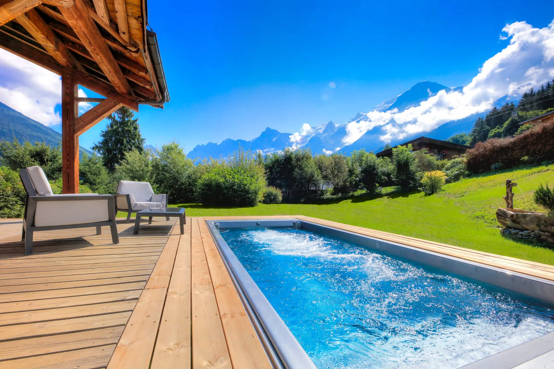 Chalet Nidaya is a stunning luxury retreat in the picturesque village of Les Houches, offering exceptional ski and summer holidays for up to 12 guests. Accommodation includes a master bedroom with a log burner, three double bedrooms, and two twin rooms with an additional twin option. Situated in the exclusive Le Crêt enclave, the chalet’s private gated driveway immediately conveys a sense of style and sophistication. Its exterior, crafted from traditional local stone and wood, harmonises perfectly with modern alpine design. The expansive decked terrace and secure garden provide an inviting space for outdoor relaxation, alfresco dining, and family activities year-round. Guests can also enjoy a sunken hot tub jacuzzi and a hydro jet stream pool, ideal for unwinding after a day on the slopes or exploring the valley.